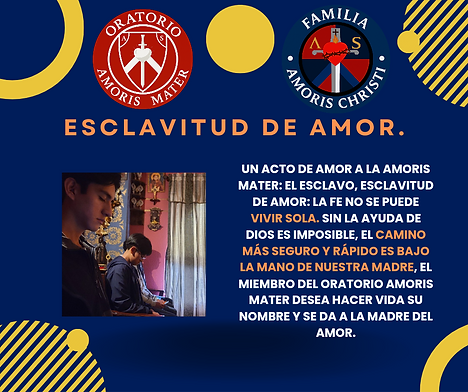 El Oratorio Amoris Mater forma parte de la familia Amoris Christi, en estrecha y total relación con los Servidores. Comparten la misma espiritualidad y el carisma del Amor, donde los Servidores son los encargados de las familias y jóvenes del Oratorio en atenderles espiritualmente y formarles en su caminar de la fe.